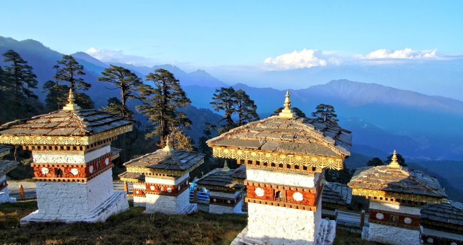 - Išvykstame link Paro. Pakeliui, jei oro sąlygos bus palankios, sustojame Dočulos perėjoje, į kurią veda vaizdingas takas per mišką, nusagstytas maldo¬s vėliavėlėmis. Čia stūkso 108 baltos stupos pastatytos 2003 m. kare žuvusių Butano karių atminimui.